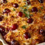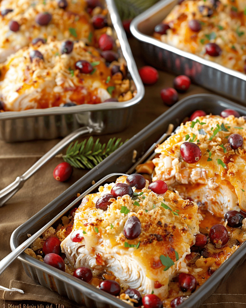 A festive, fuss-free chicken casserole with sweet-tangy cranberry glaze and savory onion flavor—perfect for stress-free holiday meals.