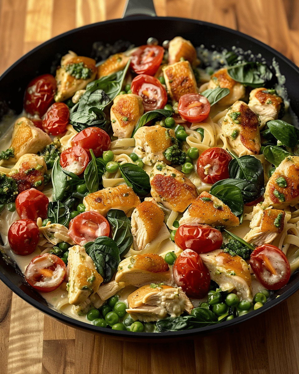 This Creamy Pesto Chicken Skillet has quickly become one of my favorite weeknight dinners—it’s fast, flavorful, and made in just one pan. The combination of seared chicken and creamy pesto sauce feels indulgent but couldn’t be easier to throw together. Whether I’m cooking for my family or just treating myself to something comforting, this dish always hits the spot.