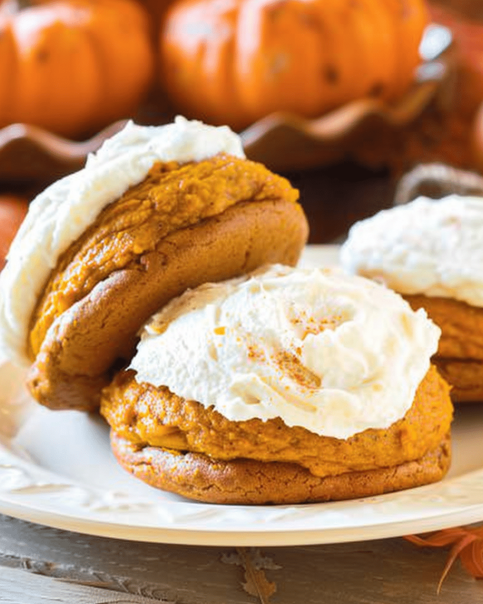 These Amish Pumpkin Whoopie Pies are soft, spiced pumpkin cakes filled with fluffy white cream. A fall dessert favorite that’s rich, moist, and perfectly sweet—just like the Amish have been making for generations!