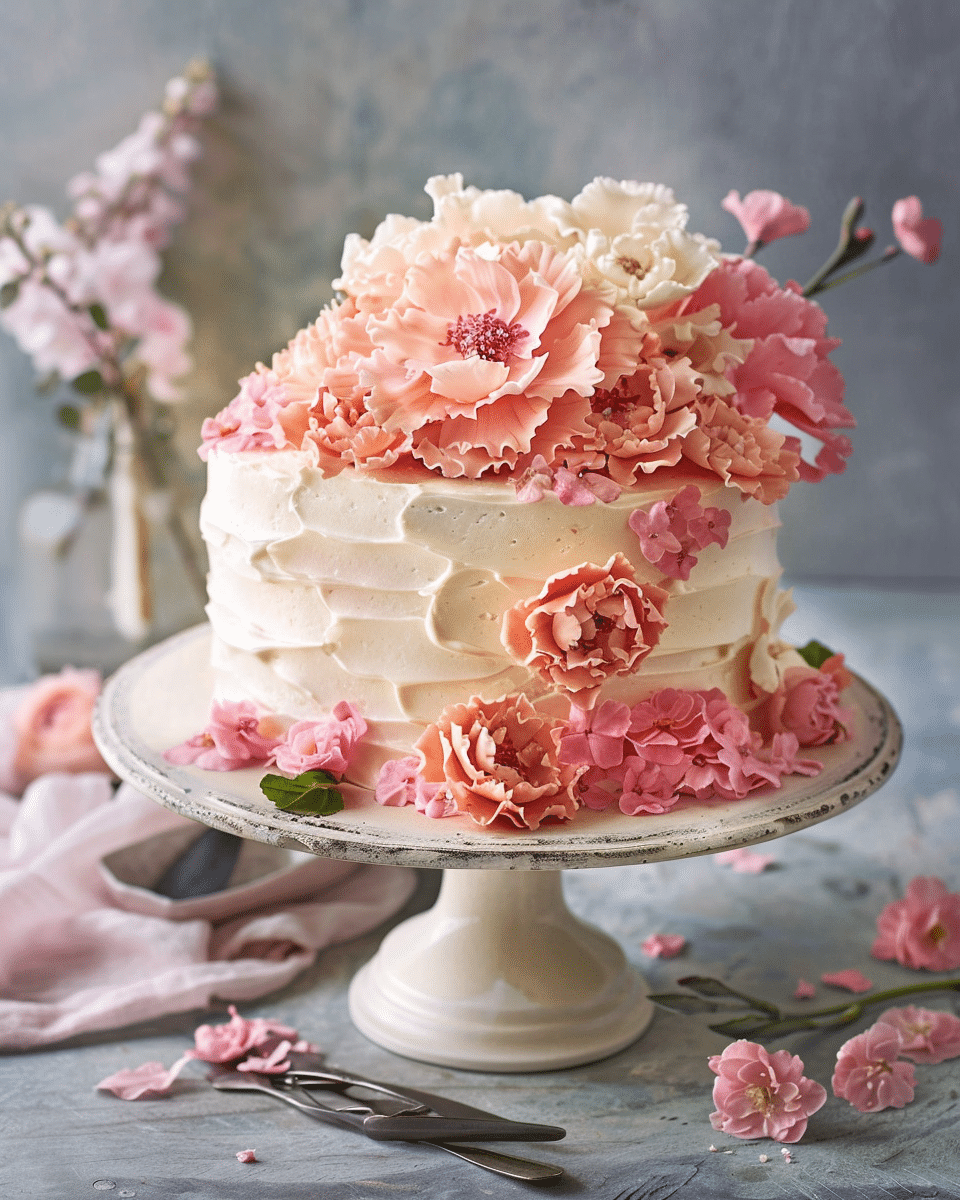 For a colorful twist, I divide the batter and tint each layer with soft pastel food coloring. I also like experimenting with different flower combinations depending on the season, such as pansies in spring or violets for a more delicate look.