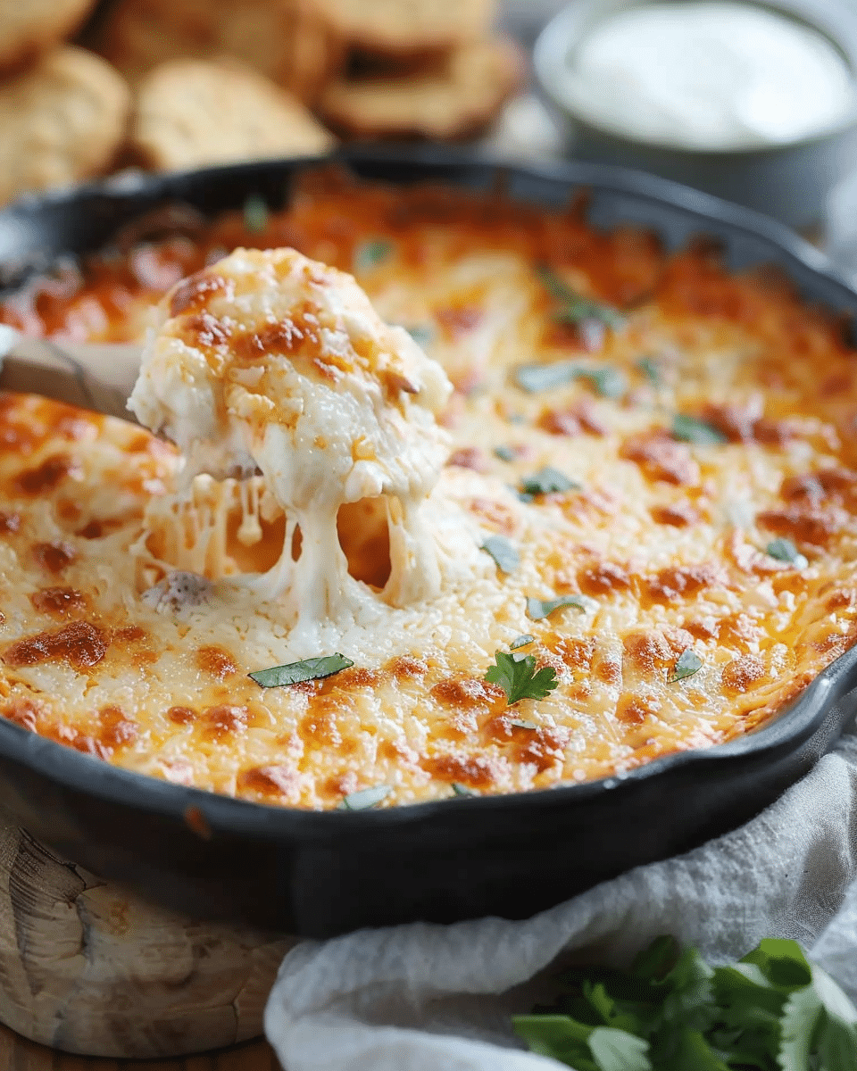 For reheating, I warm the dip in the oven at a low temperature or in the microwave in short intervals, stirring in between to keep the texture smooth and creamy.