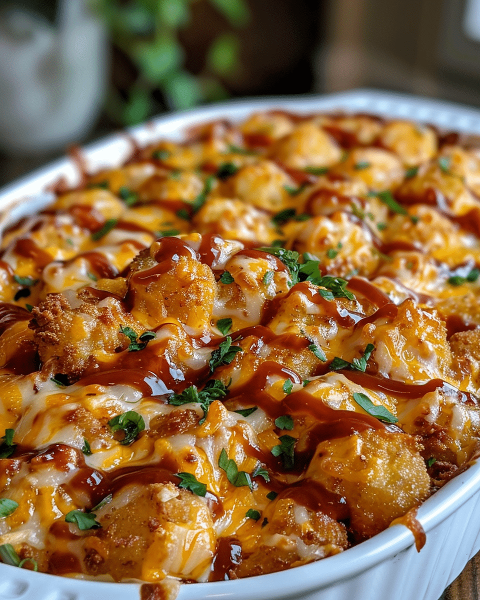 I enjoy this recipe because it brings together bold barbecue flavor with the comforting texture of a baked casserole. The sweet and smoky sauce pairs perfectly with the melted cheese and crispy tater tots.