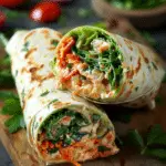 To reheat, I remove cold ingredients like lettuce if possible and warm the chicken briefly in the microwave or enjoy the wrap chilled.