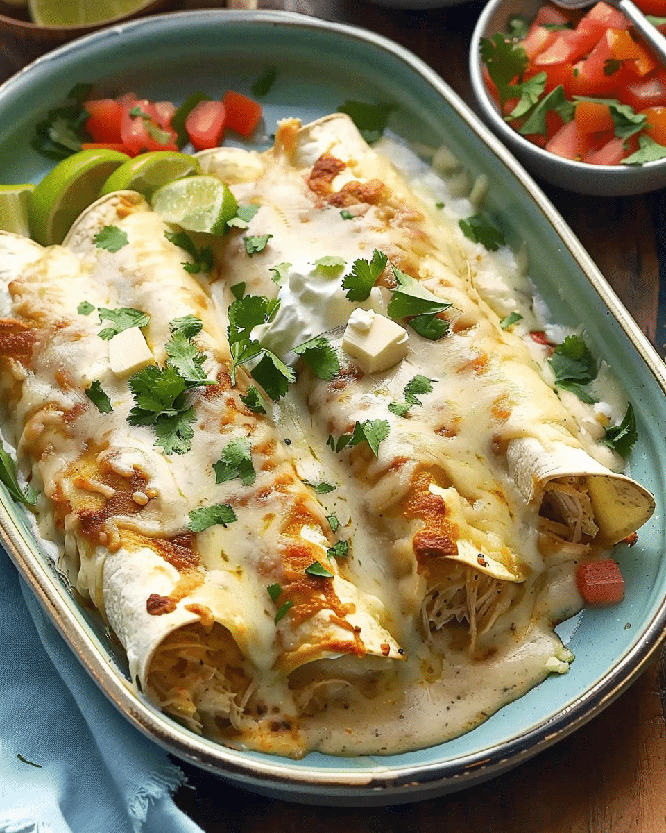 I love this recipe because it is simple to prepare yet tastes like something special. Using rotisserie chicken saves me time, and the creamy white sauce adds a rich and satisfying twist compared to traditional red enchiladas. I also enjoy how cheesy and comforting it is, making it perfect for family meals or cozy nights at home.