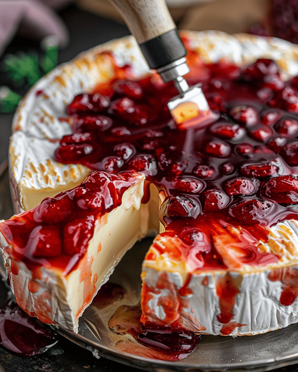 Pastry-wrapped brie: For extra indulgence, I wrap the brie in puff pastry before baking, then add the “bloody” topping.