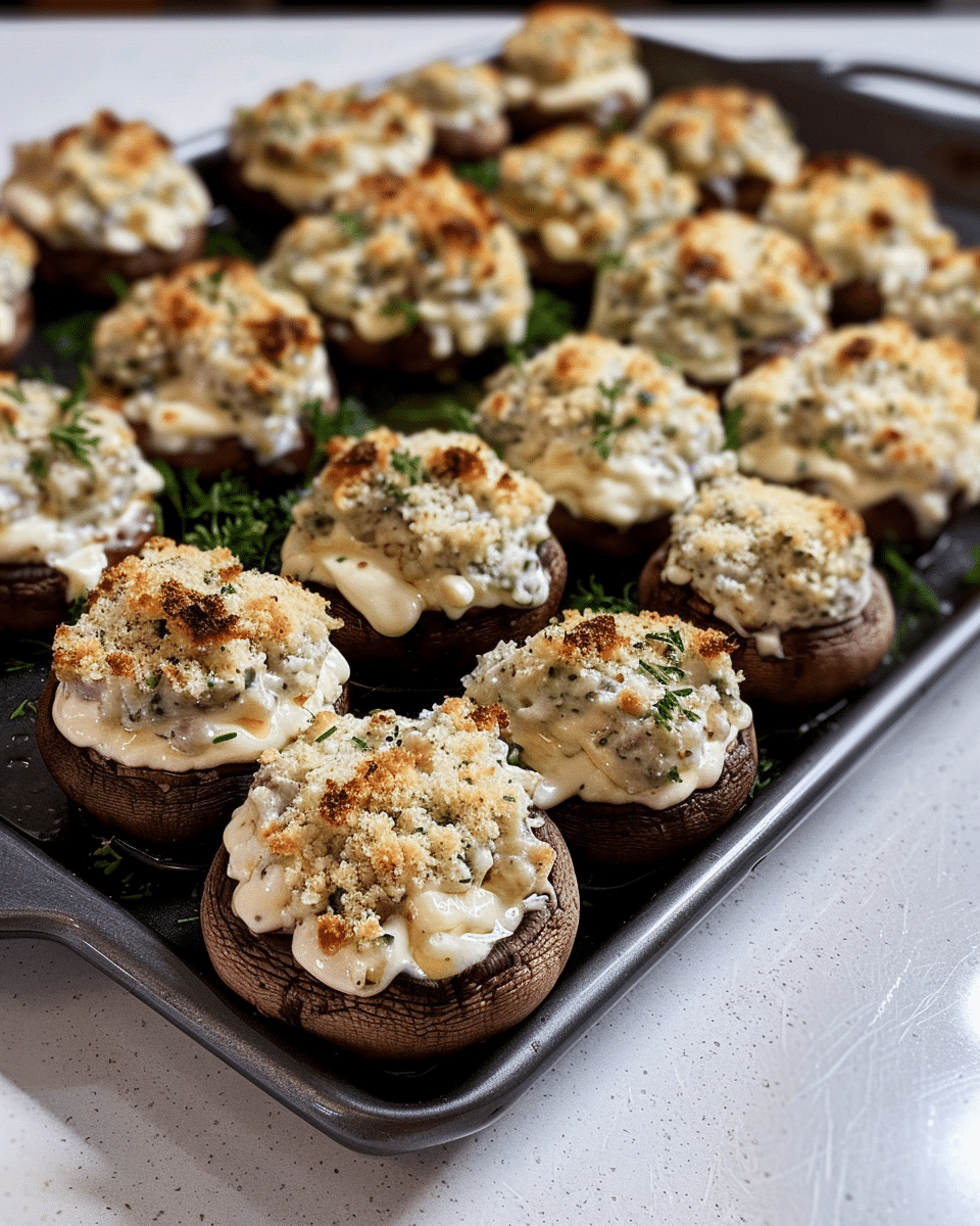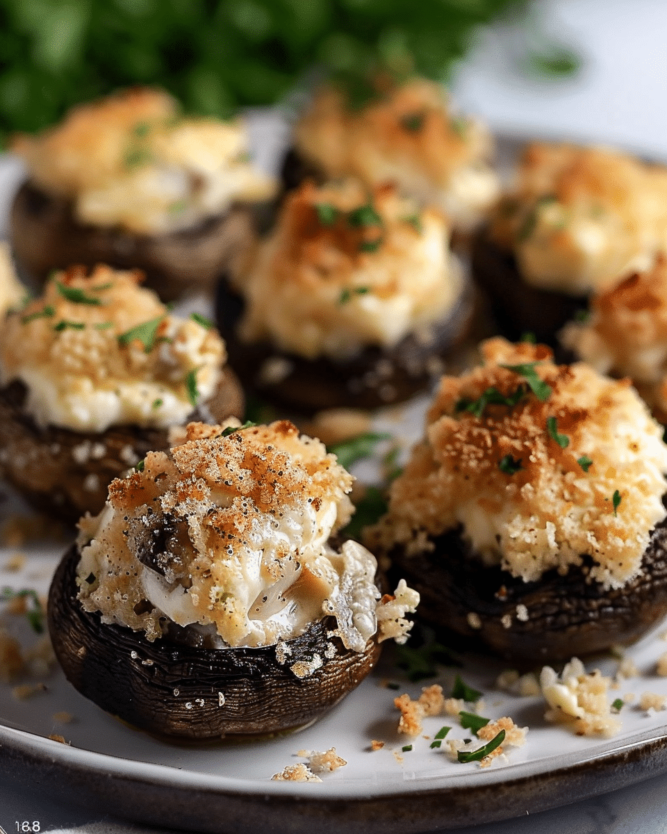 I bake the mushrooms at 400°F for 10–15 minutes, until the cheese is melted and the breadcrumbs are golden. For an extra crispy finish, I broil them for 1–2 minutes at the end.