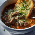 I love how the beef becomes melt-in-your-mouth tender after hours of braising. The broth gets richer with every minute it simmers, soaking up the flavors of garlic, thyme, and tomato paste. And that cheese bread? It’s not just a side—it’s essential. I always toast it until golden and bubbly, and it soaks up the soup beautifully. This is one of those recipes that feels like a warm hug.