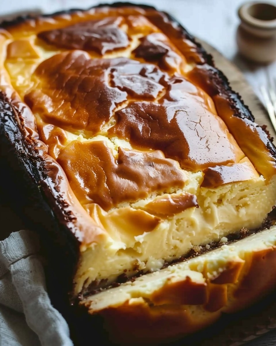I love how this cheesecake is all about texture and contrast—crispy, burnt edges and a soft, creamy interior. It’s bold, beautiful, and doesn’t require any water bath or fancy crust. The loaf pan version is just the right size when I want to make something impressive without too much fuss. Plus, its imperfect, rustic look is part of the charm.