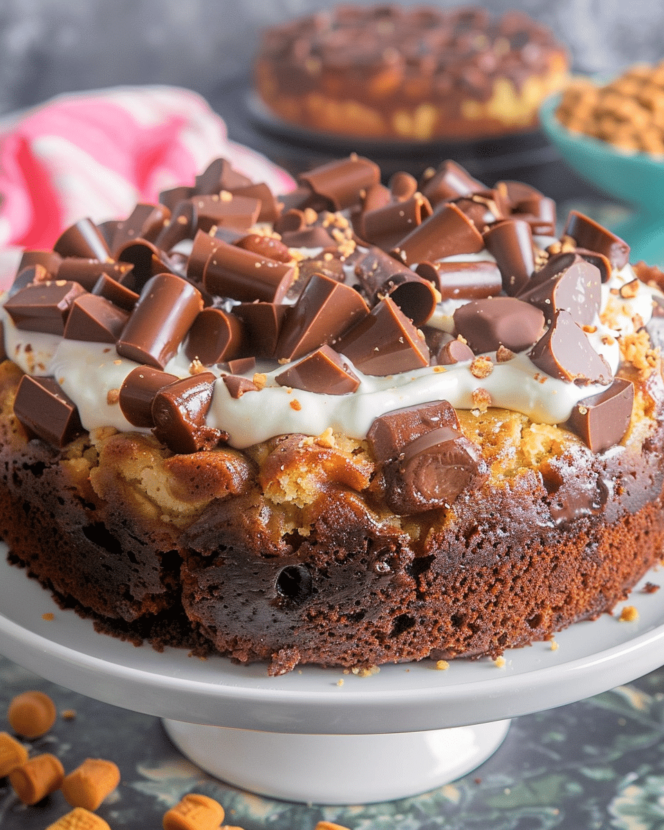 I love this dump cake because it’s ridiculously simple and incredibly indulgent. The combination of chocolate cake mix, creamy pudding, and melted peanut butter cups creates a moist, fudgy texture with pockets of melty candy in every bite. It’s perfect for parties, potlucks, or just when I want a warm dessert with minimal cleanup.