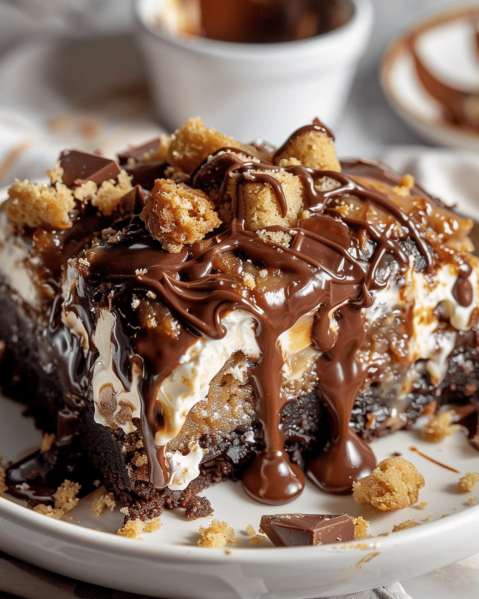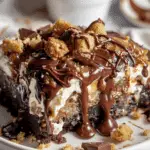 This rich and gooey dump cake combines chocolate cake mix, pudding, and Reese’s peanut butter cups—an easy, indulgent dessert perfect for chocolate and peanut butter lovers.