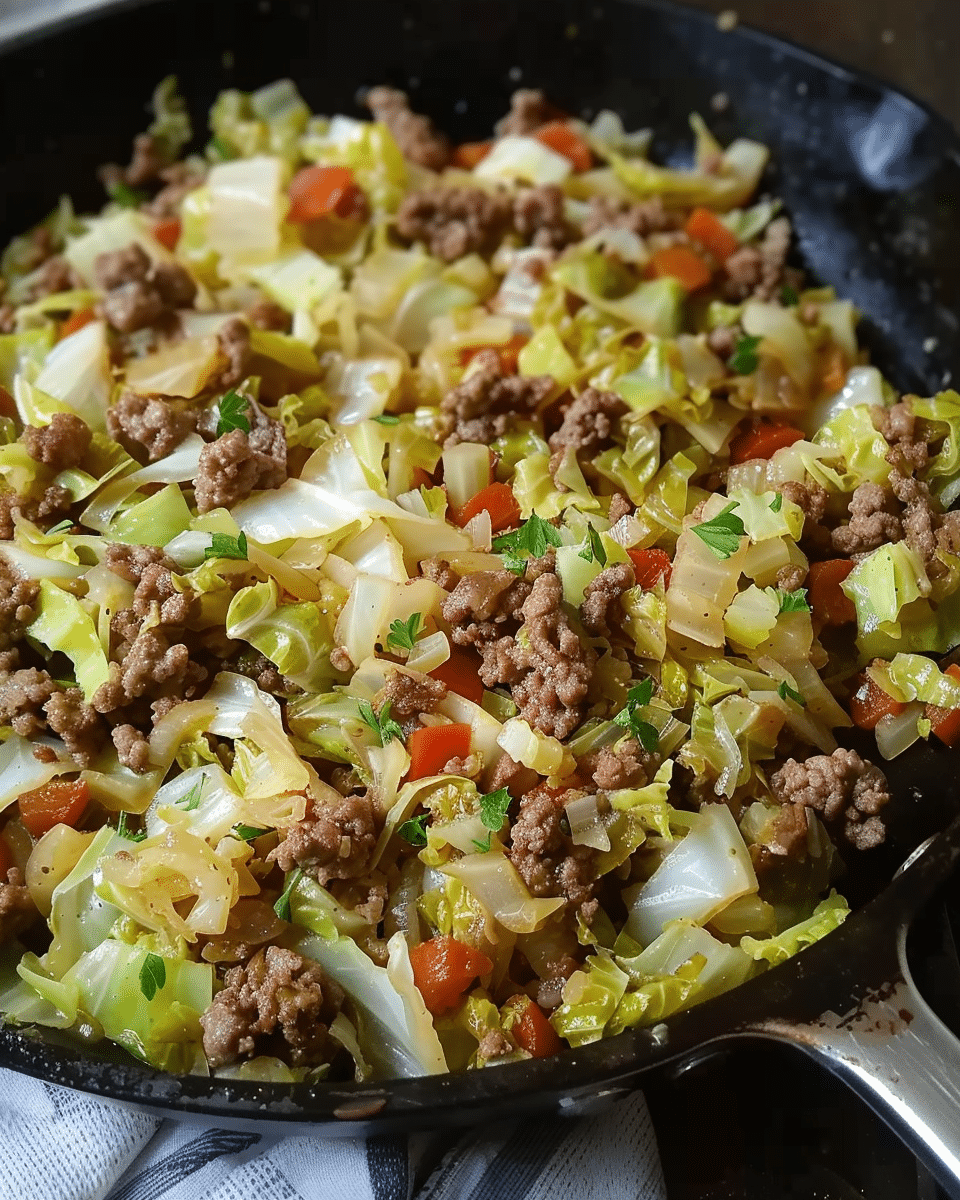 I love how this dish brings together simple ingredients to create a deeply satisfying meal. It’s great for when I want something warm and filling without spending hours in the kitchen. The spice blend gives it a subtle kick, and the cabbage becomes perfectly tender as it simmers with the beef and tomatoes. Best of all, it’s a one-pan recipe, so cleanup is a breeze.