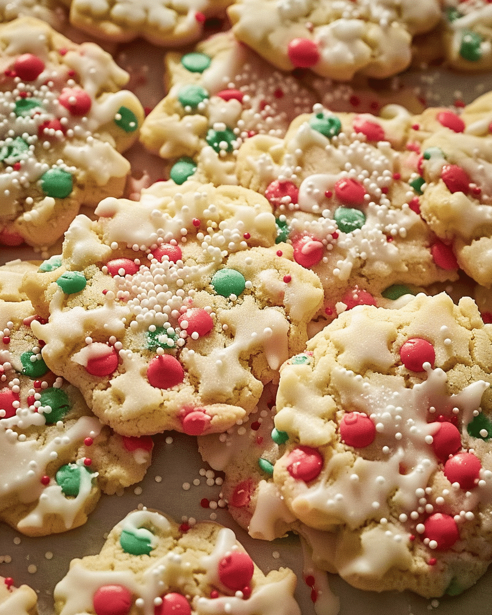 I love this recipe because it’s incredibly simple—just cake mix, oil, eggs, and a few fun mix-ins. There’s no measuring flour or worrying about dough chilling. It’s quick enough to whip up in under 30 minutes and festive enough to steal the show at any holiday gathering. Plus, the cookies are soft, chewy, and filled with the bright red and green sparkle of sprinkles or candies.