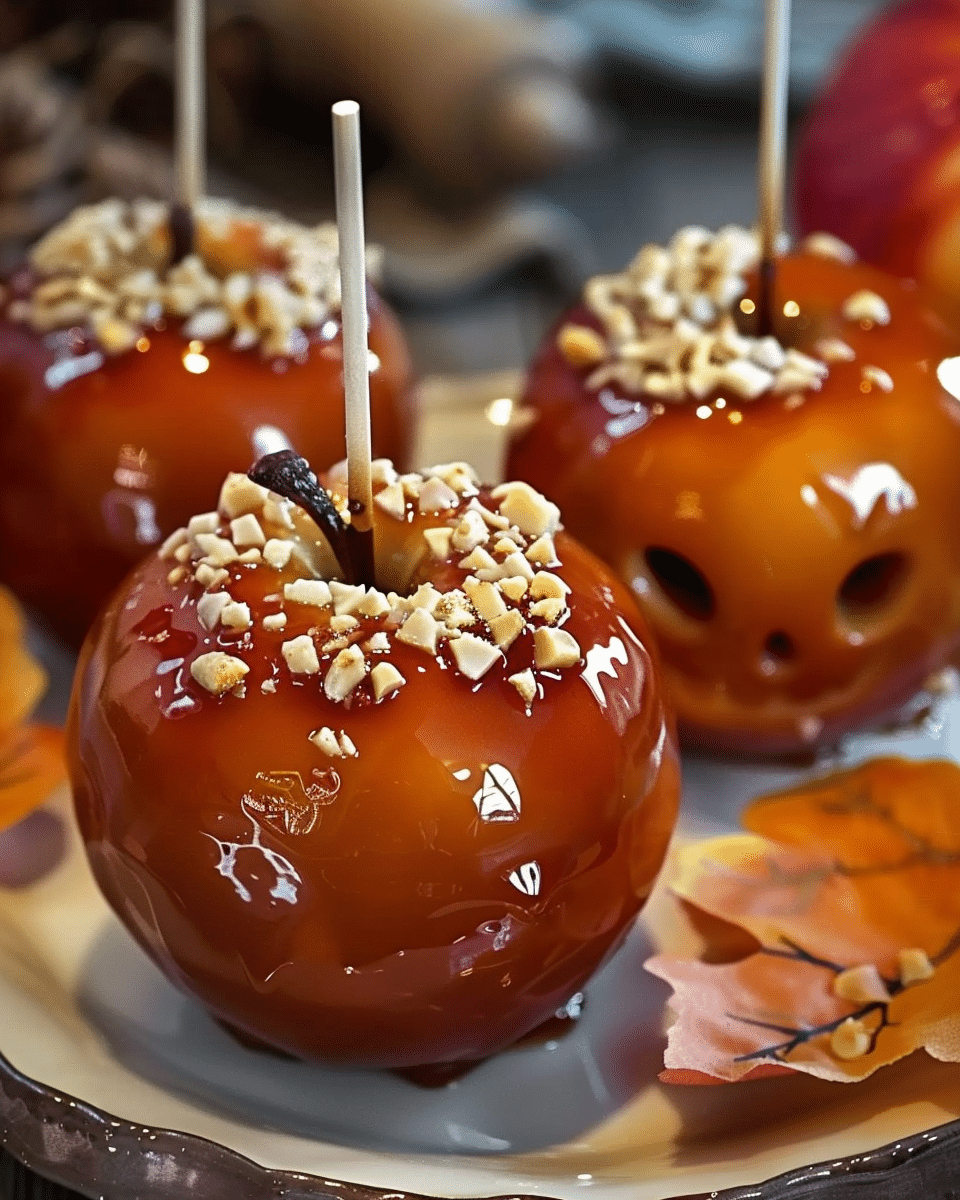 Classic candied apples with a shiny, crunchy candy shell—made with sugar, corn syrup, and tart Granny Smith apples. A fun and festive Halloween treat!