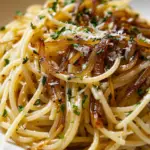 Caramelized onion and garlic spaghetti made with slow-cooked onions, fragrant garlic, and olive oil for a cozy vegetarian pasta everyone loves.