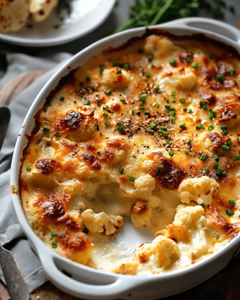 I love how this dish combines simplicity with indulgence. Roasting the cauliflower first makes it so much more flavorful than just boiling it, and the cheese sauce is silky, savory, and deeply satisfying. I can prep it ahead of time or bake it fresh—either way, it’s always a crowd-pleaser. Whether I’m pairing it with a roast or just digging in with a fork, it hits all the right notes of creamy, cheesy comfort.
