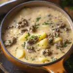 This cheesy beef and potato soup is one of those easy comfort food recipes I like to keep on repeat. It is creamy, hearty, full of flavor, and simple enough for a weeknight dinner. I love how the beef, potatoes, cheese, and cream come together in one cozy bowl, and I find it is always a satisfying meal to share.
