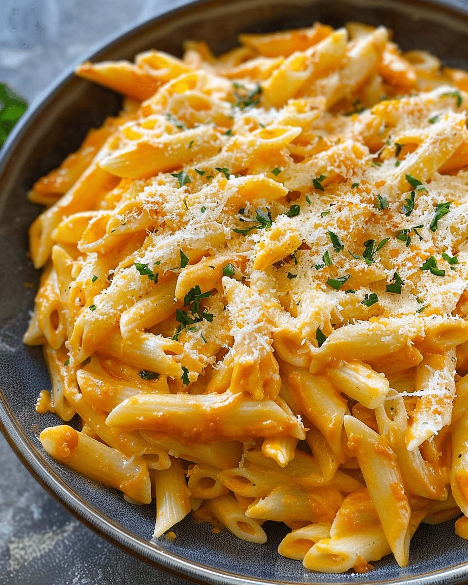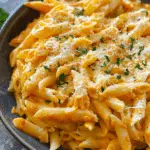I love the vibrant orange sauce that coats each penne, giving traditional tomato-cream pasta an exciting twist. It’s indulgent yet simple—combining pantry staples like tomato paste and cream cheese to create a lush, satisfyingly cheesy meal in under 30 minutes. Plus, it’s vegetarian-friendly and easy to customize.