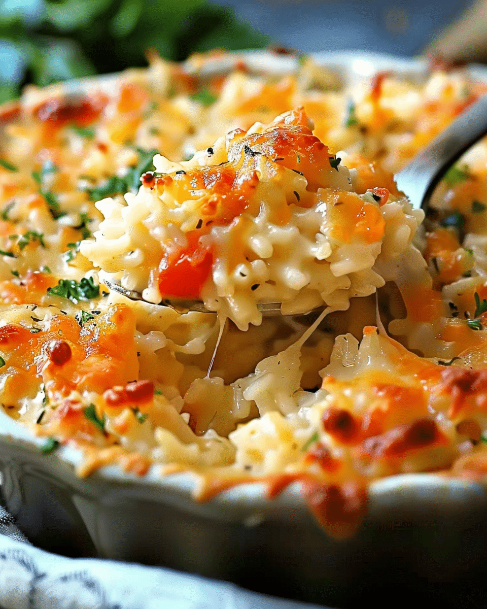 This creamy, cheesy rice bake is packed with bold Pepper Jack flavor, melty cheddar, and sour cream—perfect as a side dish or easy comfort food dinner.