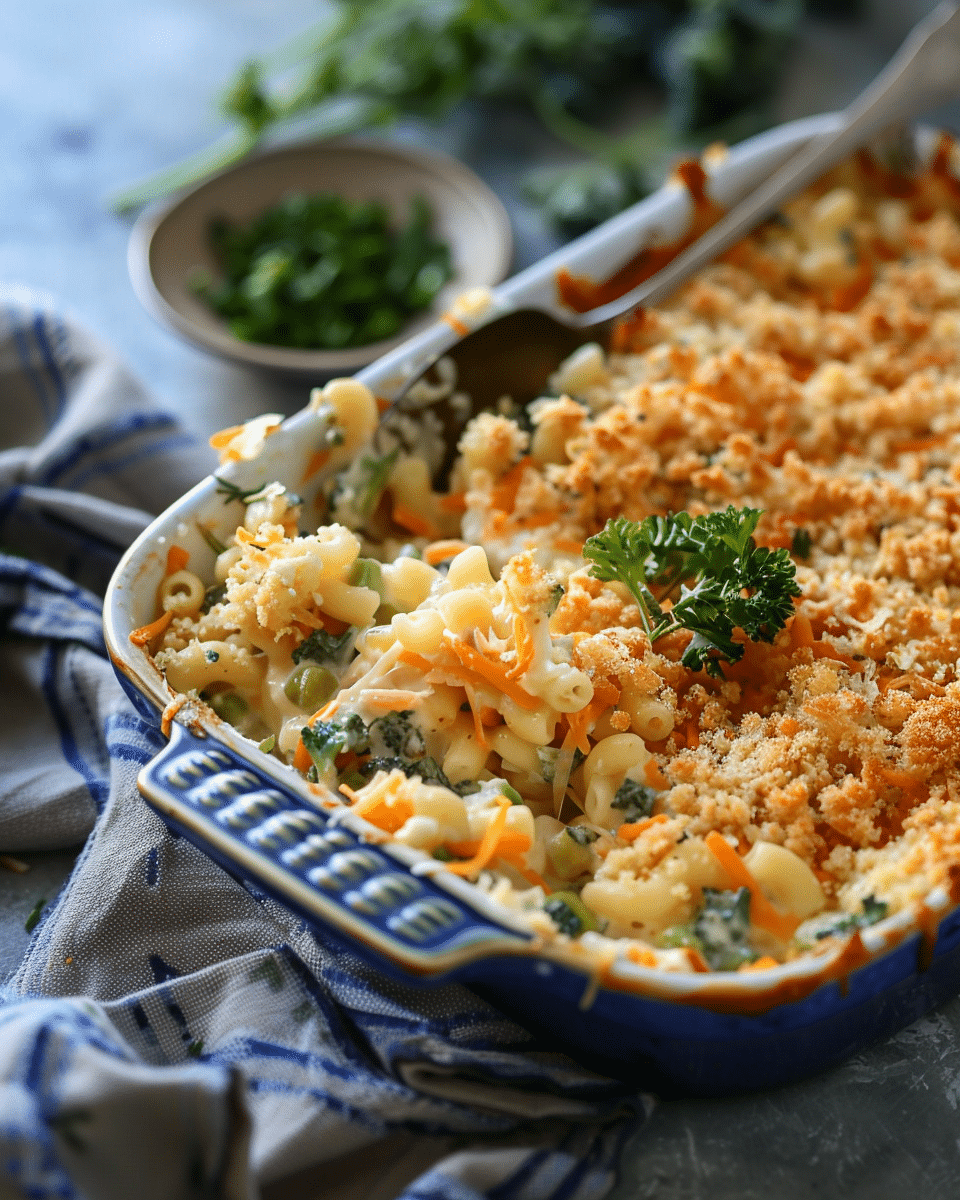 This dish is meant for stovetop cooking, but I’ve transferred it to a baking dish, topped it with extra cheese, and baked it at 375°F for 10–15 minutes for a golden crust.