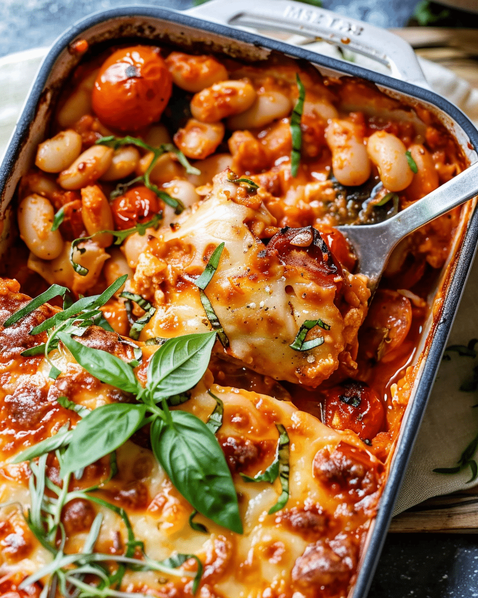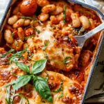 PrintCheesy White Bean Tomato Bake