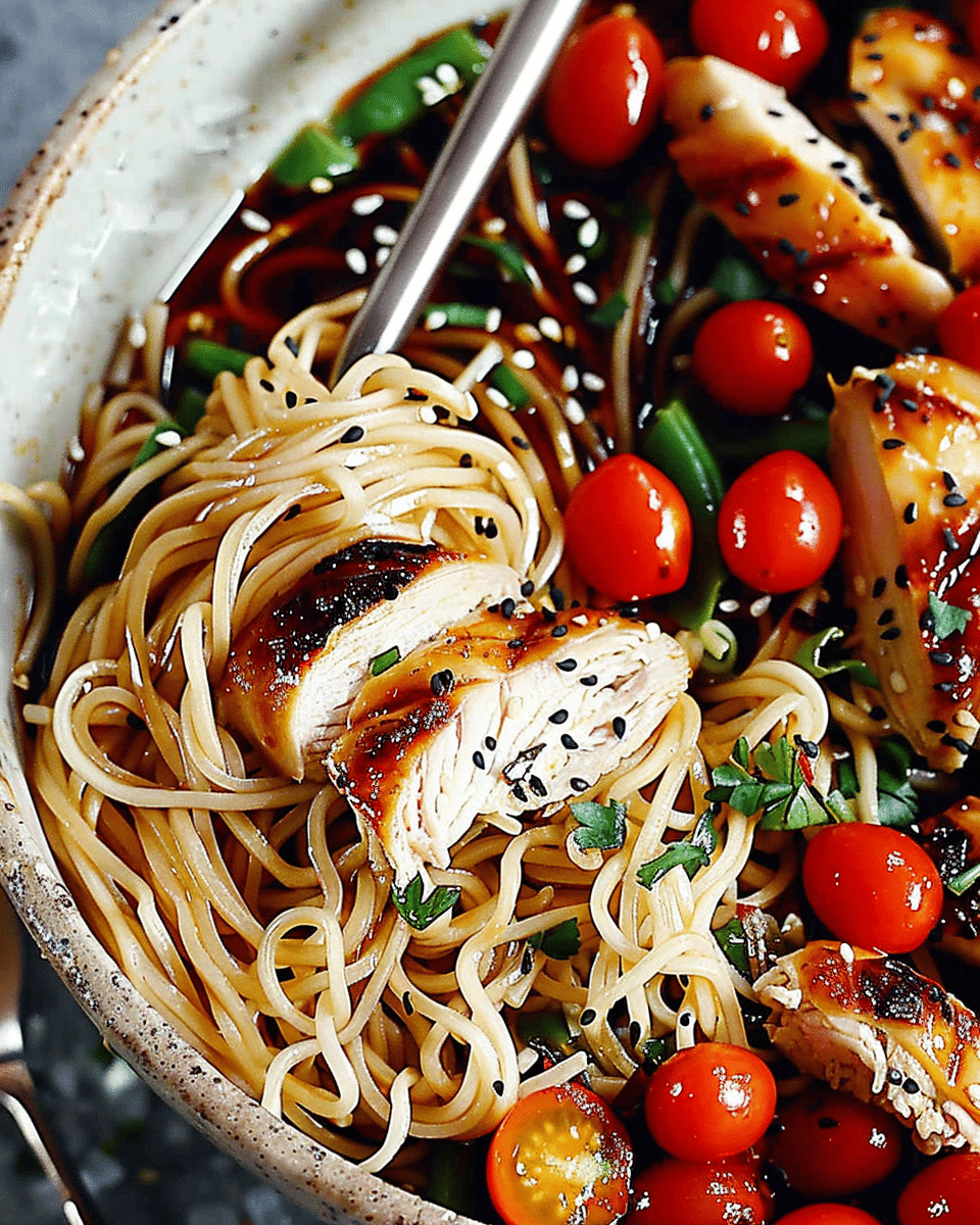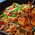 Combine: Add chicken back to the pan along with cooked noodles. Pour in the sauce and toss everything together. Stir-fry for 1–2 minutes until heated through.