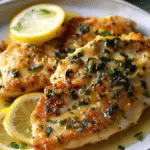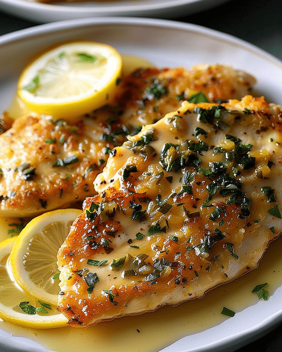 This chicken piccata recipe features lightly coated chicken breasts cooked until golden and topped with a buttery lemon garlic sauce for an elegant meal.