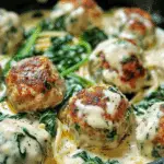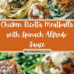 These tender chicken ricotta meatballs are baked to golden perfection and served over a creamy spinach Alfredo sauce—rich, comforting, and full of flavor.