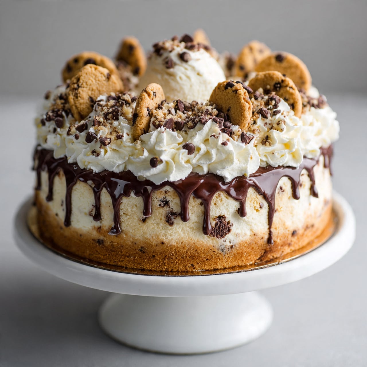 A dreamy frozen dessert layered with cookie dough chunks, crushed cookies, chocolate chips, and caramel—perfect for birthdays or hot summer days.