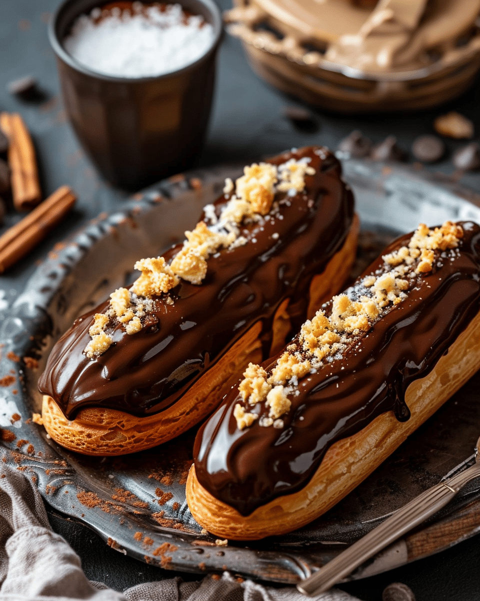I enjoy making chocolate éclairs because they combine technique and creativity into one beautiful dessert. The crisp pastry, creamy filling, and chocolate glaze make every bite feel special. Even though they take time, I always find the result worth the effort, especially when I see how impressive they look once finished.
