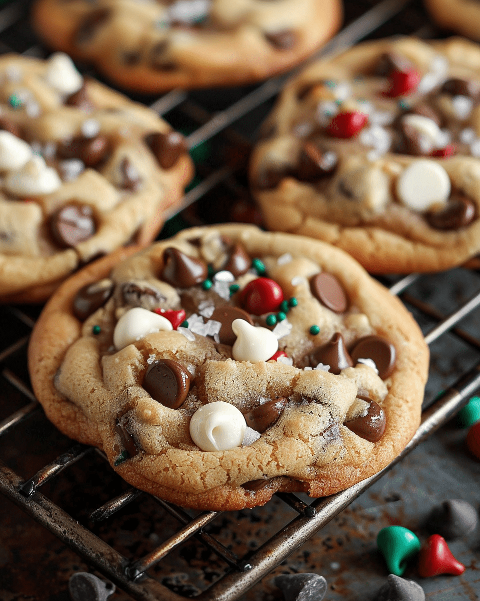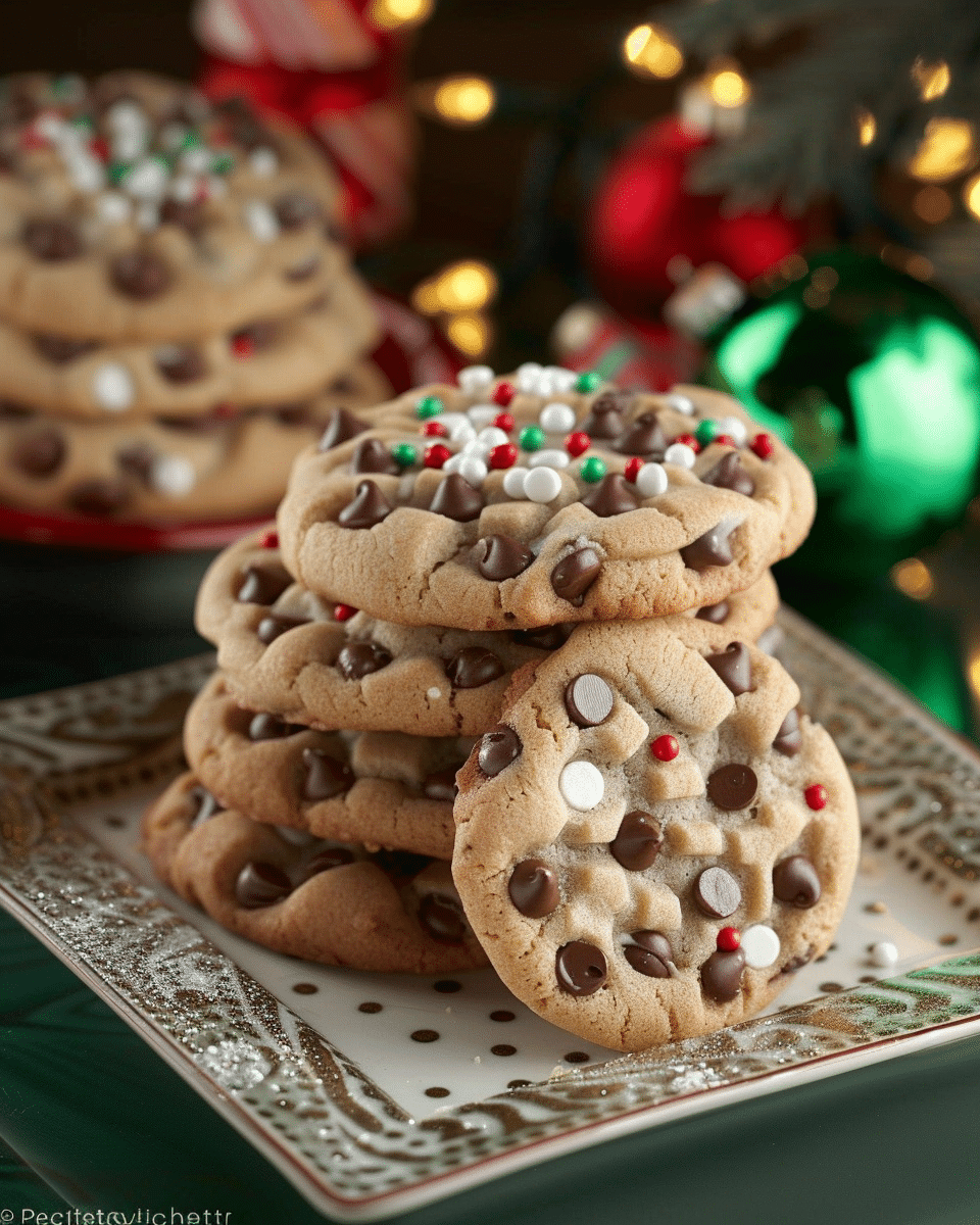 These soft and chewy Christmas cookies are packed with chocolate chips, red and green M&Ms, and festive sprinkles. Perfect for cookie swaps, Santa plates, or cozy holiday baking!