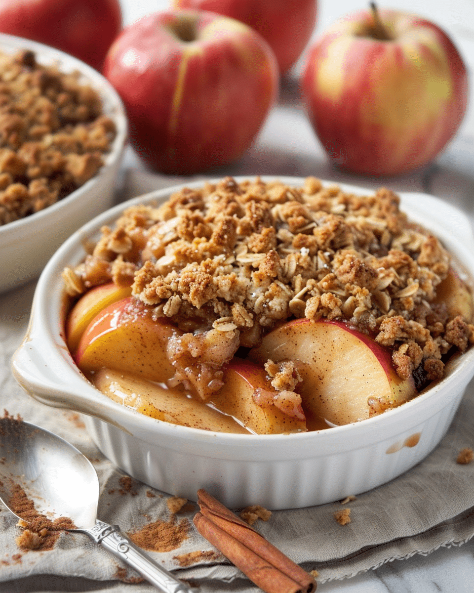 This classic cinnamon apple crisp is warm, buttery, and topped with a golden oat crumble—an easy fall dessert made with fresh apples and cozy spices.