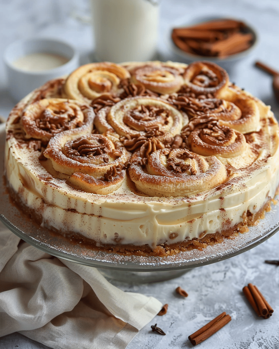 The best Cinnamon Roll Cheesecake with a creamy cheesecake center and sweet cinnamon swirl flavor. A comforting homemade dessert that’s perfect for cinnamon lovers.