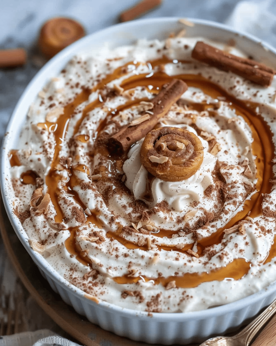 I love how this dip delivers all the cozy comfort of a cinnamon roll without needing to preheat the oven. The cream cheese base is sweet and creamy, the spice blend is warm and nostalgic, and the icing swirl on top makes it feel just like the real thing. It’s also easy to whip up for parties, holiday gatherings, or a sweet snack board — and it’s always a crowd favorite.