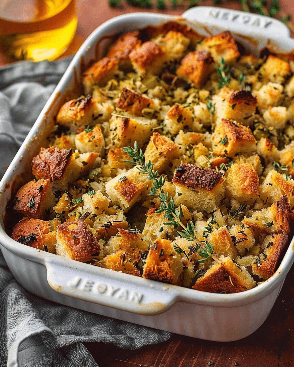 This Classic Herb Stuffing is everything I want in a traditional holiday side—fragrant, buttery, and perfectly balanced between soft and crispy. It’s the kind of dish that brings warmth to the table and pairs effortlessly with turkey, gravy, and all the other seasonal favorites. Once I made it from scratch like this, I never went back to the boxed stuff. It’s become a permanent part of my holiday traditions—and I know it’ll become one of yours too.