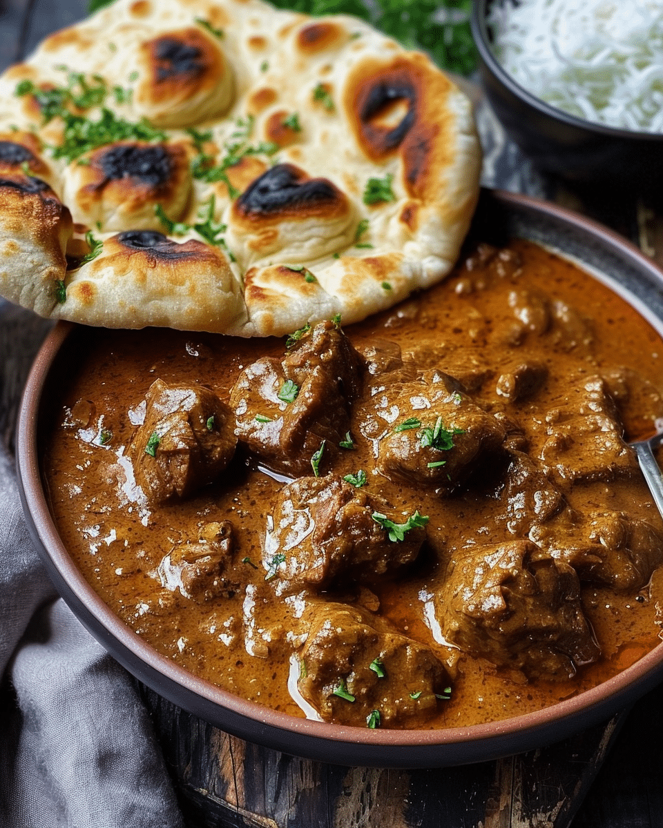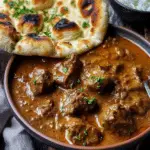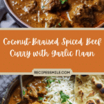 Coconut-Braised Spiced Beef Curry with Garlic Naan is a rich and aromatic slow cooked dinner made with tender beef chuck, creamy coconut milk, and warm spices. This comforting homemade curry recipe is perfect for cozy weekends, family gatherings, and restaurant quality meals at home.