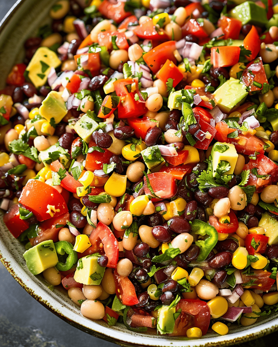 I adore how this recipe combines crunchy peppers, beans, corn, and tomatoes for both texture and nutrients. The zesty lime-cilantro dressing ties everything together, and I find it endlessly versatile: I serve it as a dip with chips, a side at barbecues, or a topping on grilled meats. It’s always a hit and makes me feel like I’m hosting a fiesta!