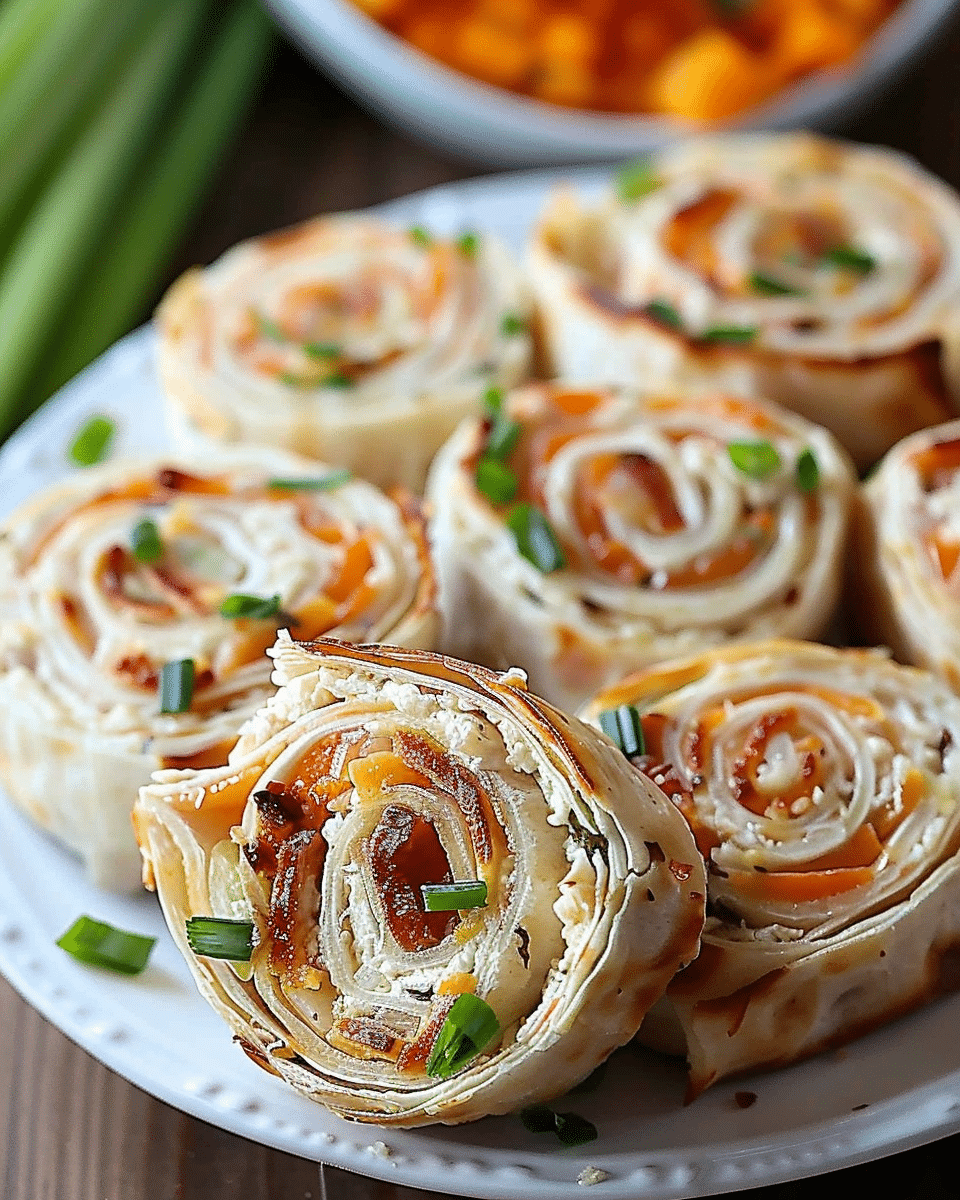 I store the pinwheels in an airtight container in the refrigerator for up to 3 days. They’re best served cold or at room temperature, so I don’t usually reheat them. If I’m making them ahead, I keep them rolled and wrapped, then slice just before serving for the freshest look.