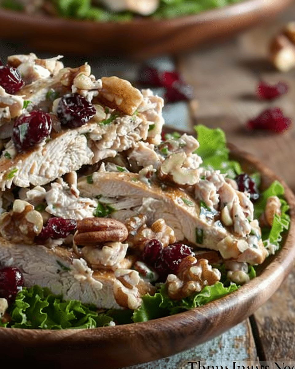 A refreshing chicken salad with rotisserie chicken, tart cranberries, crunchy walnuts, and herbs in a creamy dressing. Perfect for sandwiches, wraps, or lettuce cups.