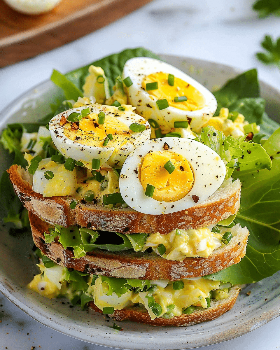 This egg salad is one of my favorite quick lunches—it’s creamy, flavorful, and endlessly customizable. Whether I’m layering it in a sandwich or enjoying it with crisp veggies, it always hits the spot. It’s simple, satisfying, and something I’ll keep making again and again.