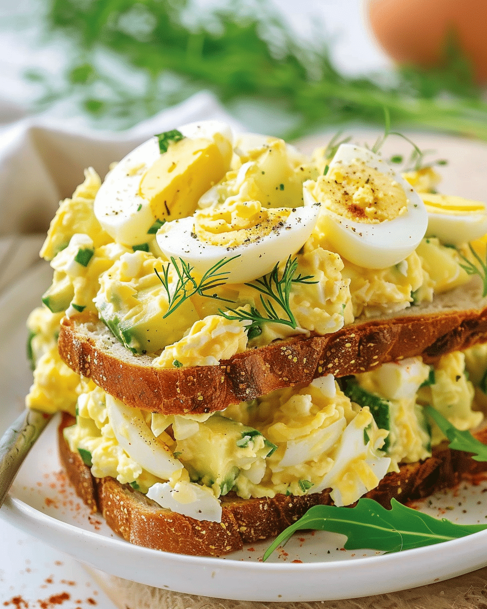I store any leftover egg salad in an airtight container in the fridge. It stays fresh for 3 to 5 days. Since it’s served cold, I don’t reheat it—just stir before serving if it’s been sitting for a day or two.
