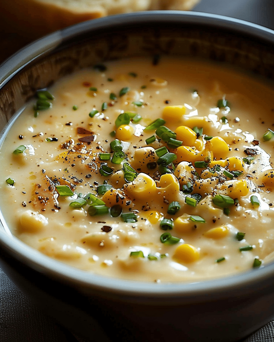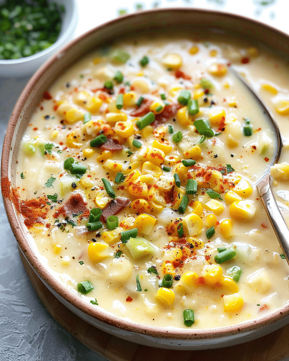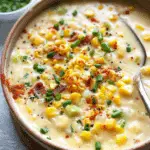 A rich and creamy corn chowder packed with sweet corn, tender potatoes, and crispy bacon. This easy one-pot meal is comforting, hearty, and ready in just 45 minutes.