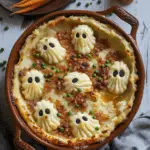 I love how comforting and creative this dish is. It’s got all the hearty, savory goodness of traditional shepherd’s pie, but the addition of ghost-shaped mashed potatoes turns it into something special. The flavor is warm and familiar, and those adorable little potato swirls brown up beautifully in the oven. It’s easy to make ahead, perfect for kids and adults, and just the right mix of spooky and satisfying.