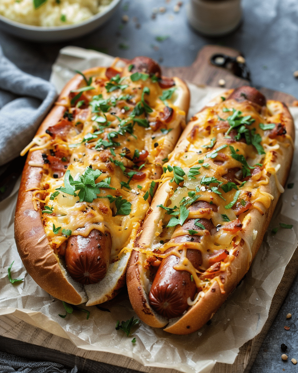 I arrange the hotdogs on the prepared baking sheet and bake them for 10 to 15 minutes, until the cheese is fully melted and golden. Once they’re done, I let them cool briefly so the cheese can set before serving.