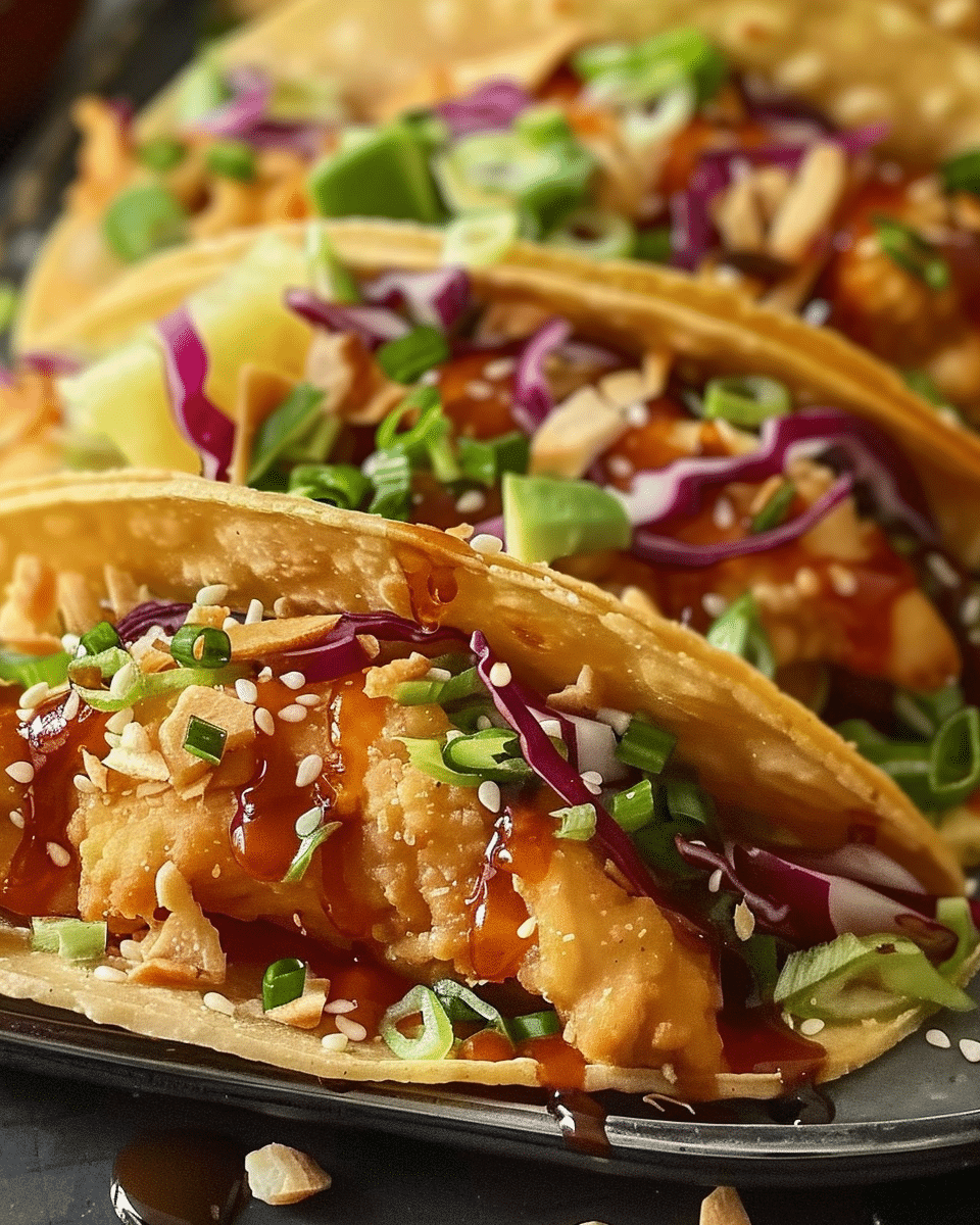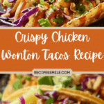 These crispy chicken wonton tacos are the perfect Asian-inspired fusion appetizer—filled with teriyaki chicken, crunchy slaw, and a drizzle of sweet chili sauce.