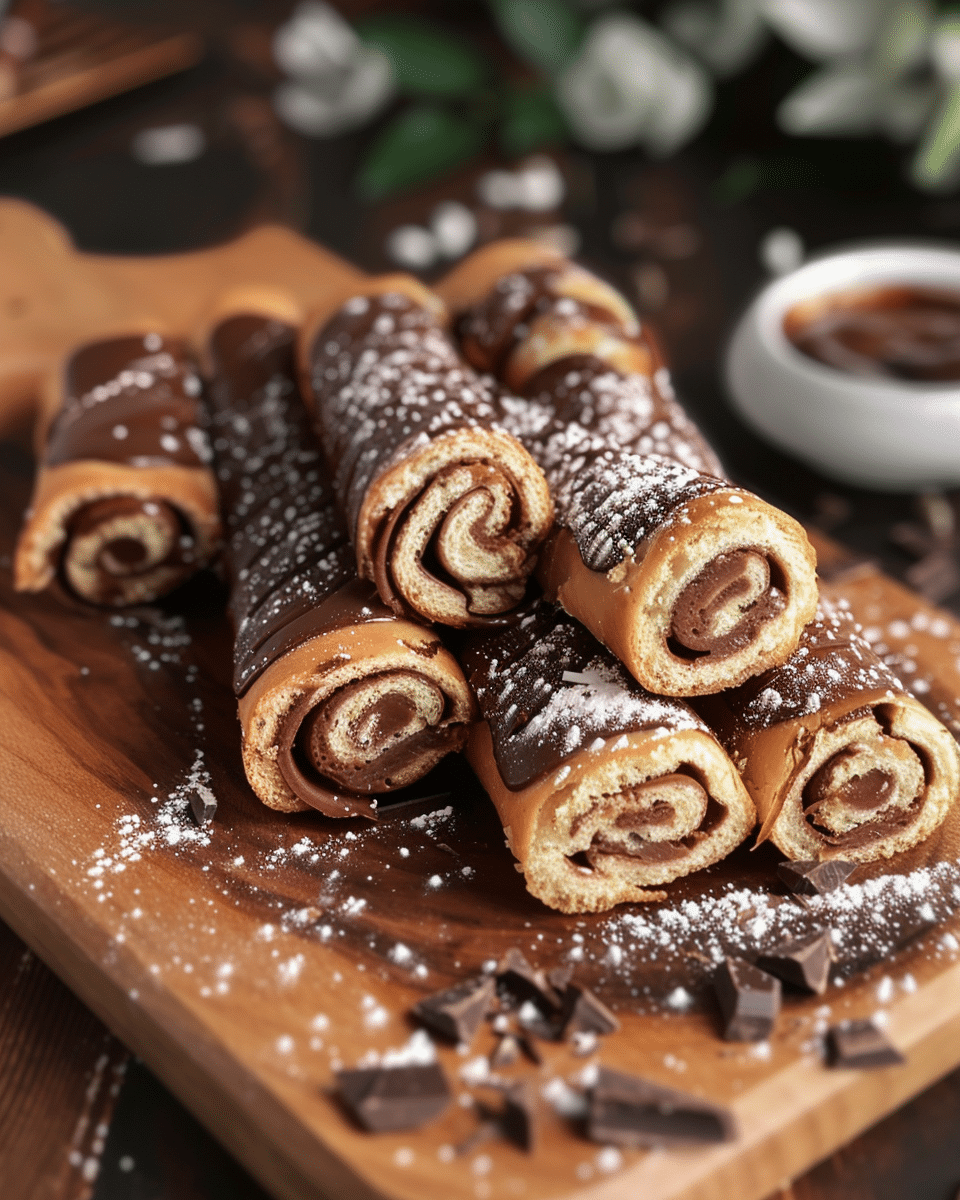 Simple and indulgent crispy chocolate rolls with flaky layers and a rich, melty chocolate center perfect for quick desserts or sweet snacks.