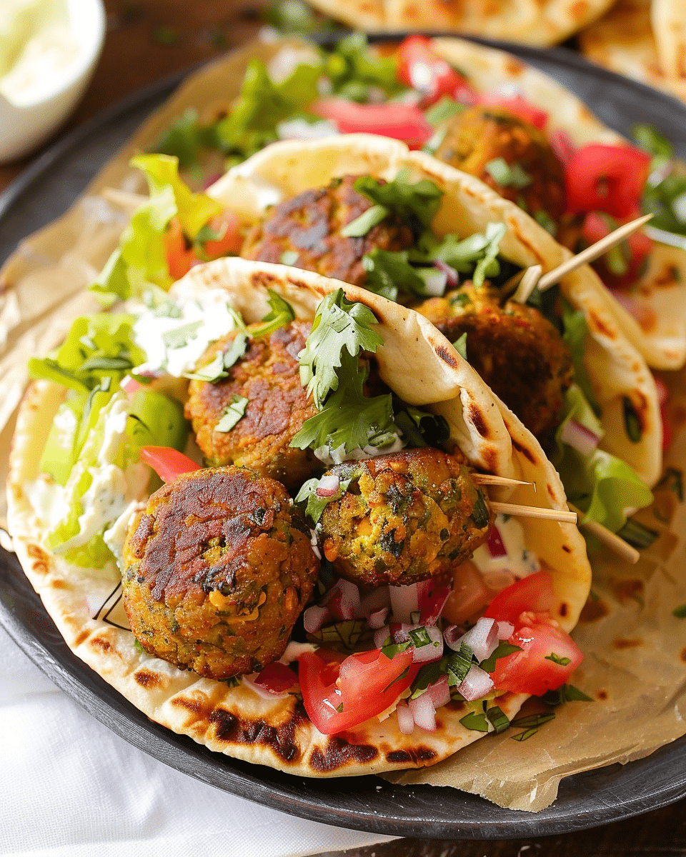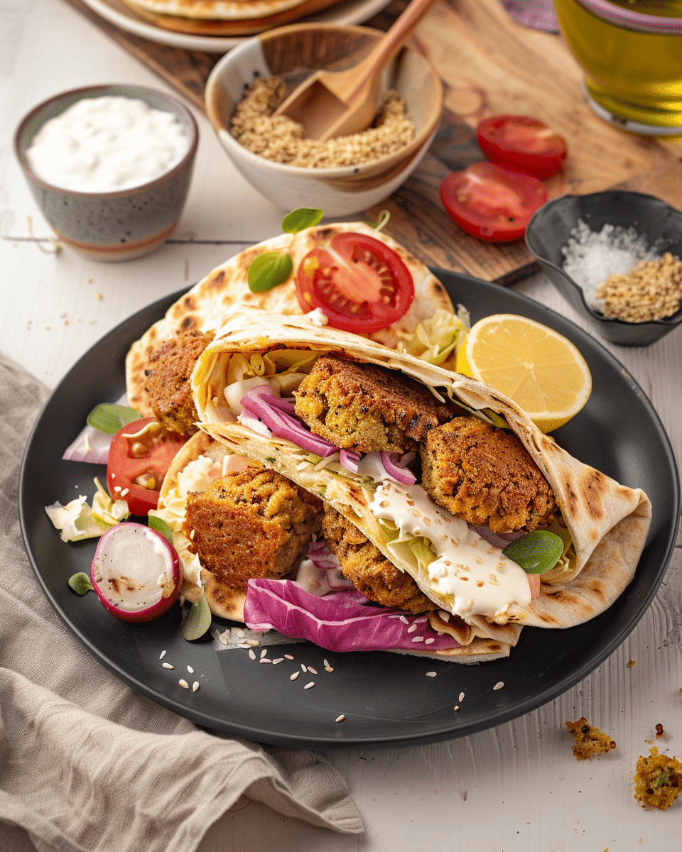The falafel can be stored in the fridge for up to 4 days. I reheat them in a skillet or oven for the best texture. The tzatziki also keeps well for 3–4 days in an airtight container. I store the wraps unassembled and build them fresh when I’m ready to eat.