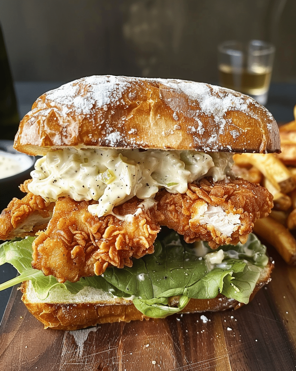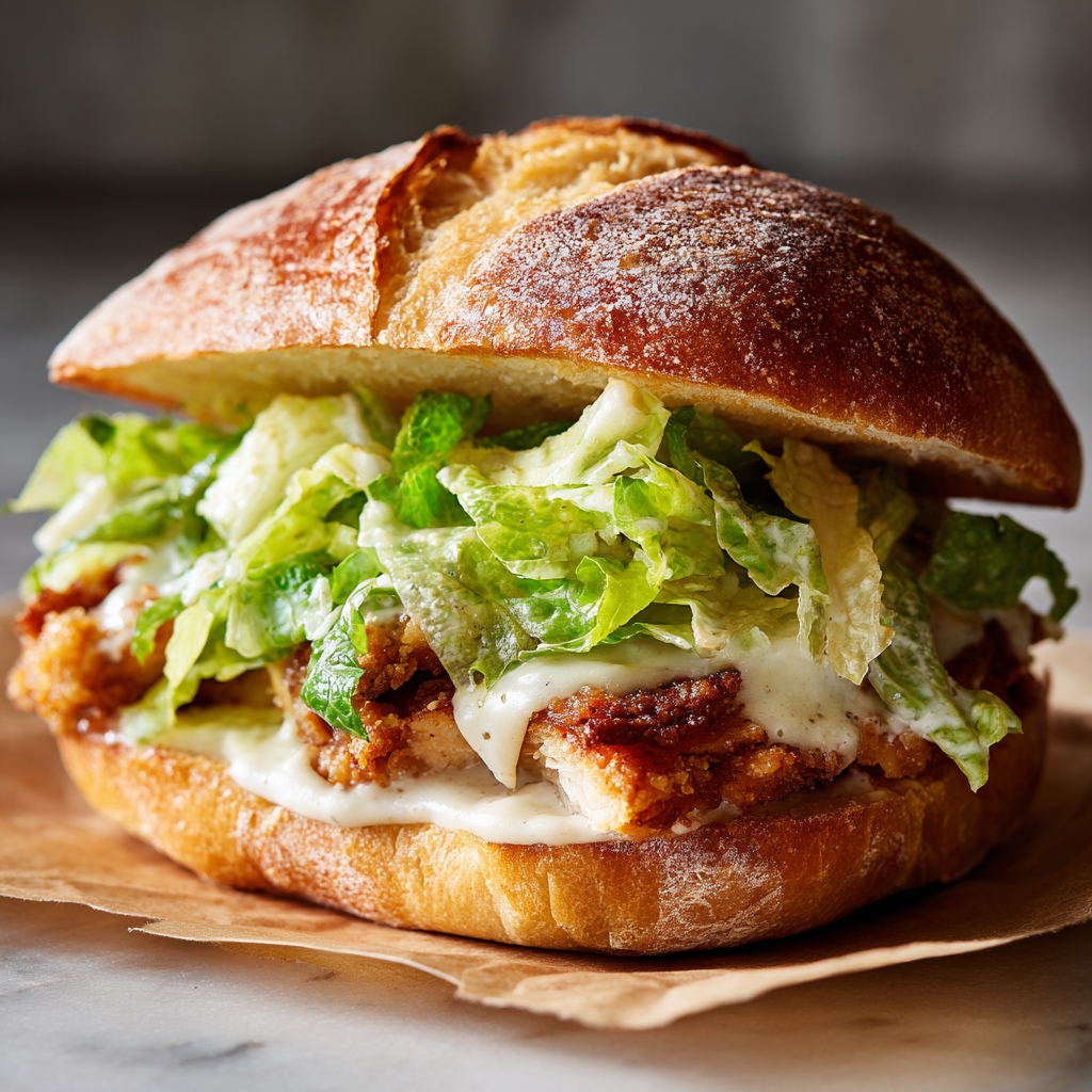 This viral crispy panko fried chicken Caesar sandwich is loaded with crunchy golden chicken, creamy homemade Caesar dressing, and fresh romaine on a toasted brioche bun. The ultimate chicken sandwich recipe for lunch or dinner.