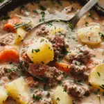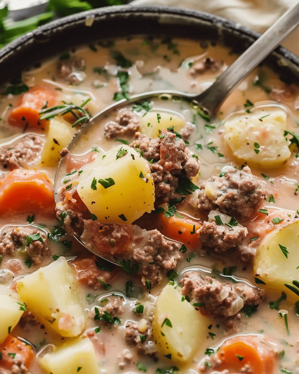 This cozy slow-cooked soup is packed with tender potatoes, savory ground beef, and a rich, cheesy broth—comfort food made easy in your crockpot!
