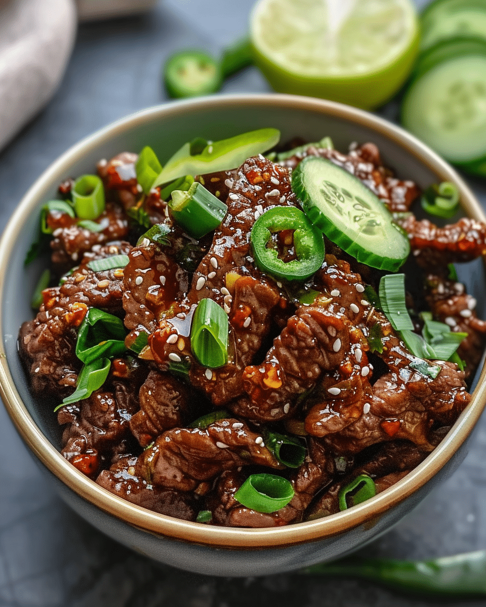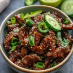 I appreciate how quickly this meal comes together without sacrificing flavor. The combination of sesame oil, gochujang, garlic, and ginger creates a deep, savory heat that I find incredibly comforting. I also enjoy how the cool cucumber salad contrasts with the warm, spicy beef, giving every bite a refreshing crunch.