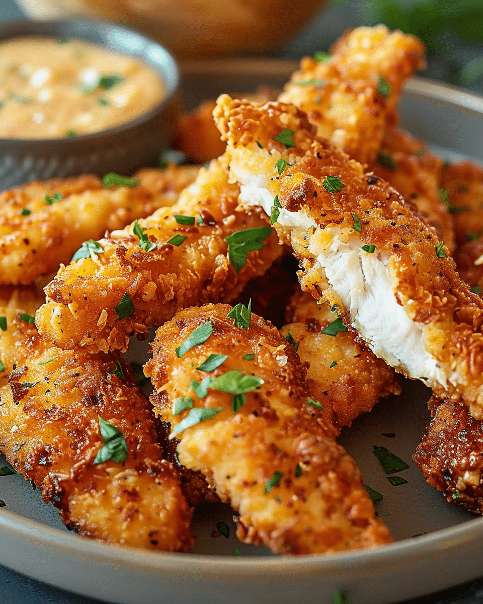 Juicy, cheesy, and packed with flavor—these easy crack chicken tenders are coated in Ritz crackers, ranch seasoning, and Parmesan for a crave-worthy bite.